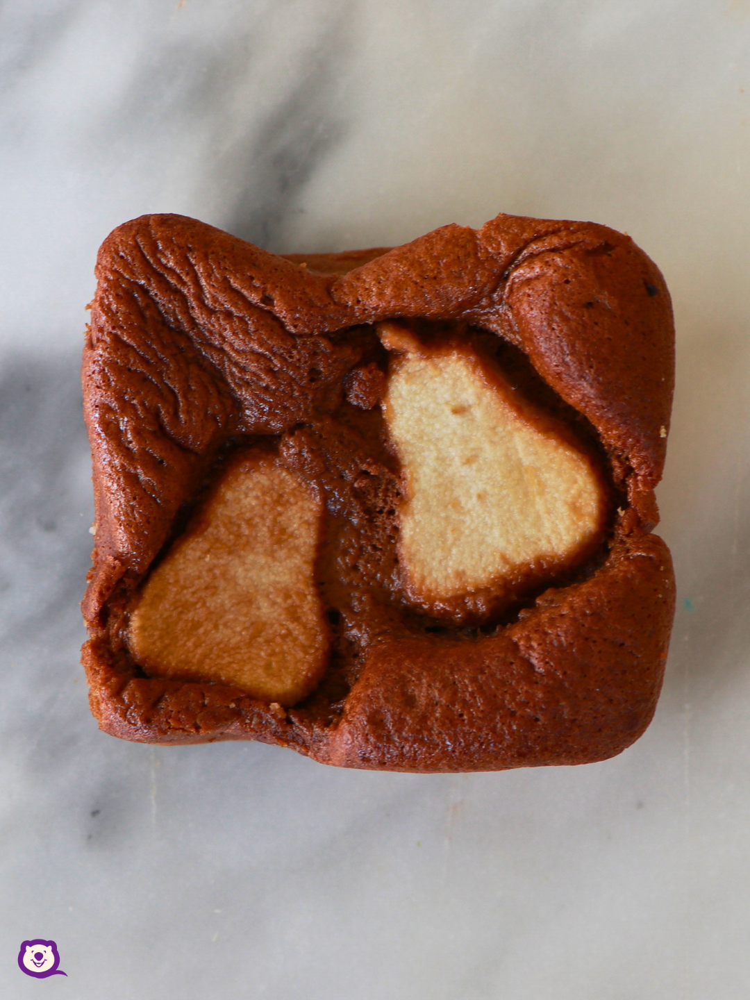 A melt-in-your-mouth chocolate sponge, packed with juicy pear chunks for that perfect crunch, and finished with even more pear on top.