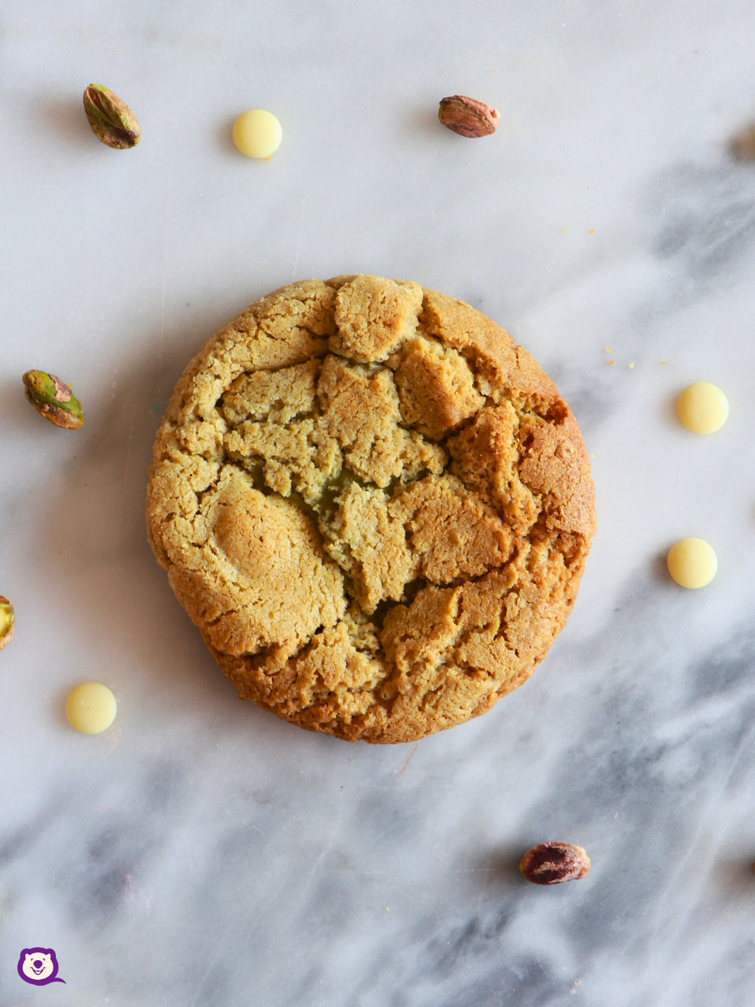 With pistachio spread blended into the dough and in the center, it adds an extra layer of rich, nutty flavor in every bite. Packed with roasted pistachio pieces for that perfect crunch, white chocolate callets for a touch of sweetness, it’s crunchy on the outside and irresistibly gooey on the inside.